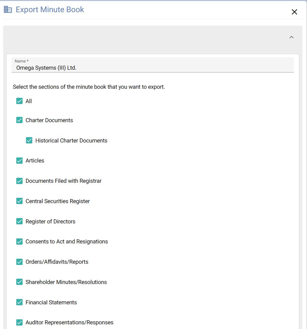 When documents have been returned (and the Task marked Completed), click to generate a Directors Register, Central Securities Register, and Corporate Summary to file in your (Virtual) minute book.